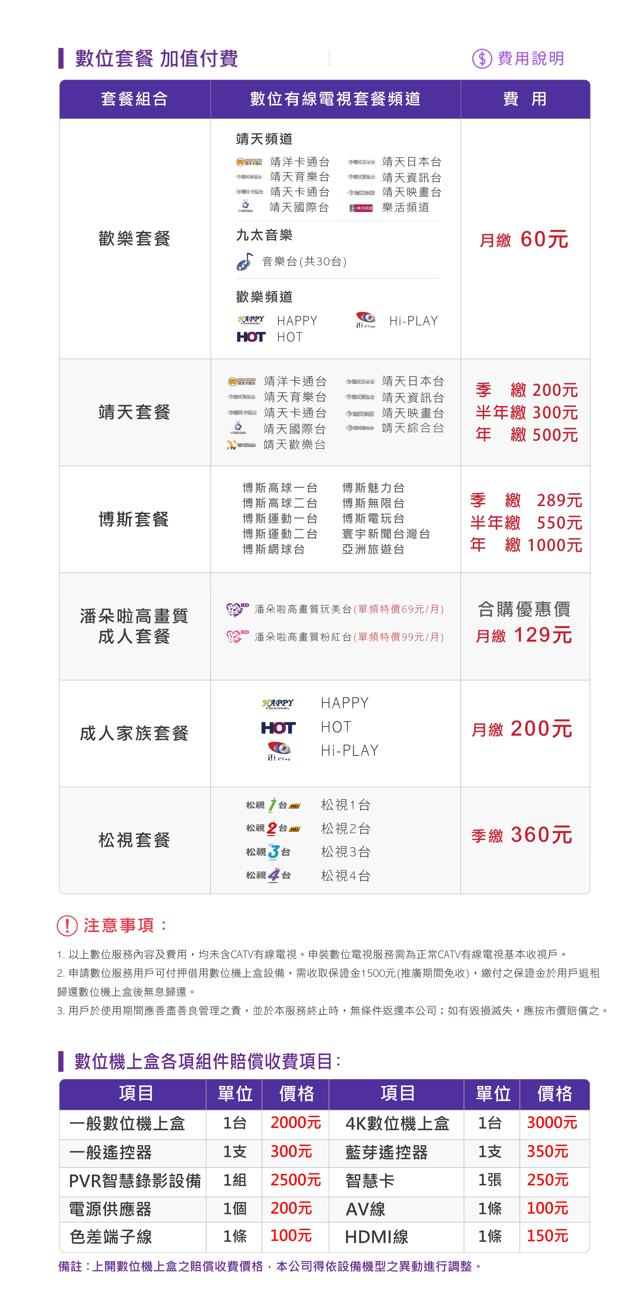 數位電視&收費標準